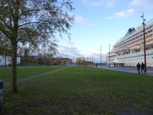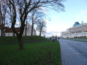 Der eisige Wind fegt durch alle Straßen. Da ist es egal, in welche Richtung die Straße geht; es ist unangenehm und das warme Schiff zieht mich magisch an. So macht das Erkunden nicht wirklich Spaß und ich beschließe, wieder zum Schiff zurück zu gehen. Ich erreiche es von einer Straße hinter der Festung.