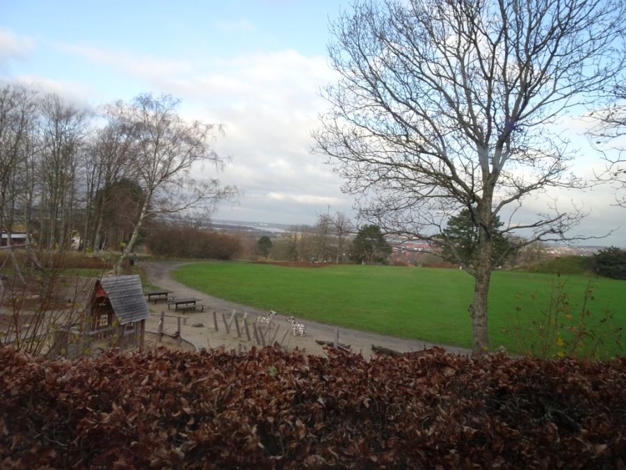 Zuerst geht es zu einem auf einem Hügel liegenden Park, in dem sich im Sommer immer viele Familien treffen und von dem aus man eine gute Sicht über Aalborg hat.