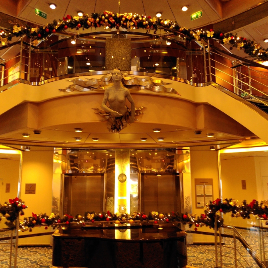 Dann beschließe ich, einmal über das ganze Schiff zu gehen und die ganze Weihnachtsdeko zu fotografieren, die sich in den letzten Tage überall ausgebreitet hat.