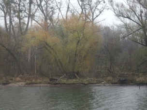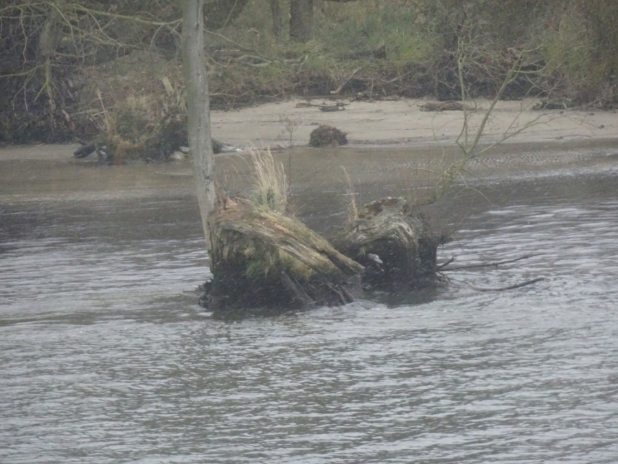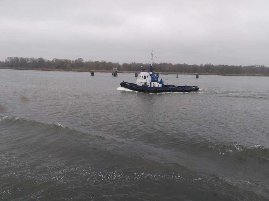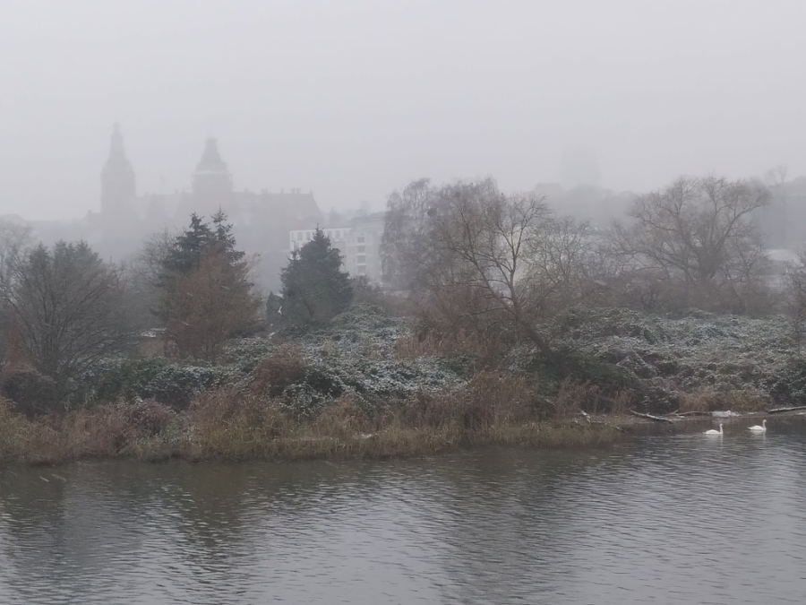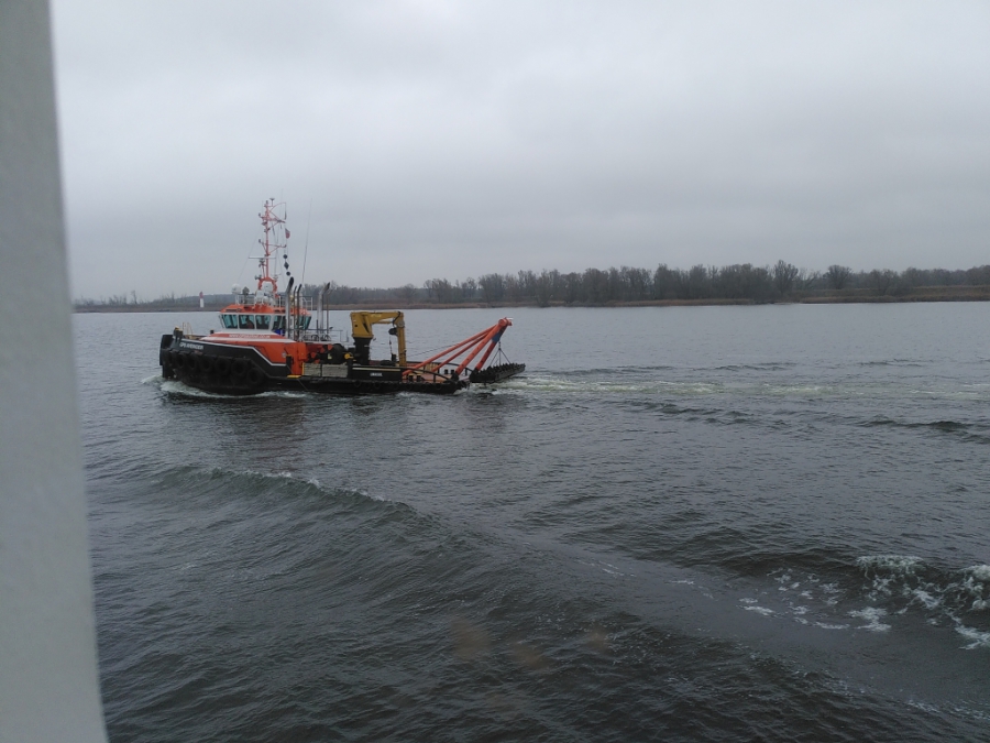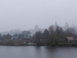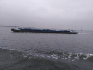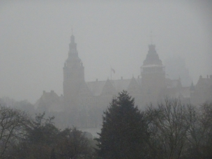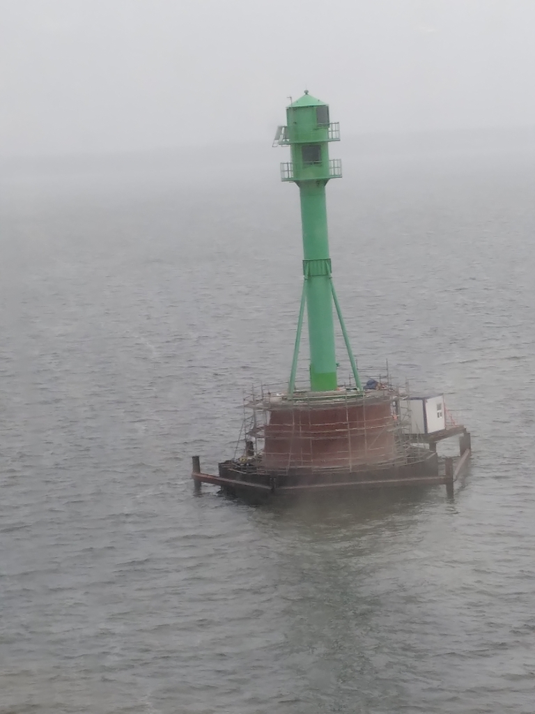 Nach einer ruhigen und erholsamen Nacht stehe ich für meine Verhältnisse wieder früh auf (kurz nach 8:00) und werfe wie üblich erst einmal einen Blick aus dem Fenster. Wir sind bereits im Stettiner Haff, werden aber noch gut 4 Stunden bis zum Anlegen in Stettin brauchen. Mein Ausflug beginnt auch erst um 13:40. Also muss ich mich nicht beeilen und kann erst einmal in aller Ruhe die Fahrt durch das Haff beobachten und auch einige Fotos machen. Das Wetter ist auch wirklich nicht besonders gut. Es ist einfach kalt, nass und diesig, so dass alles, was etwas weiter weg ist, einfach im Dunst verschwindet.