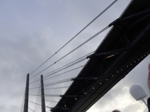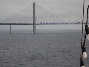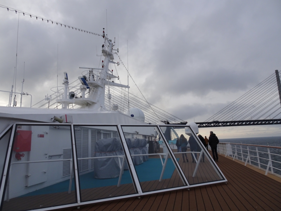 So gestärkt klettere ich auf Deck 12, um mit ganz vielen anderen Passagieren die Durchfahrt unter der Øresund-Brücke zu beobachten.