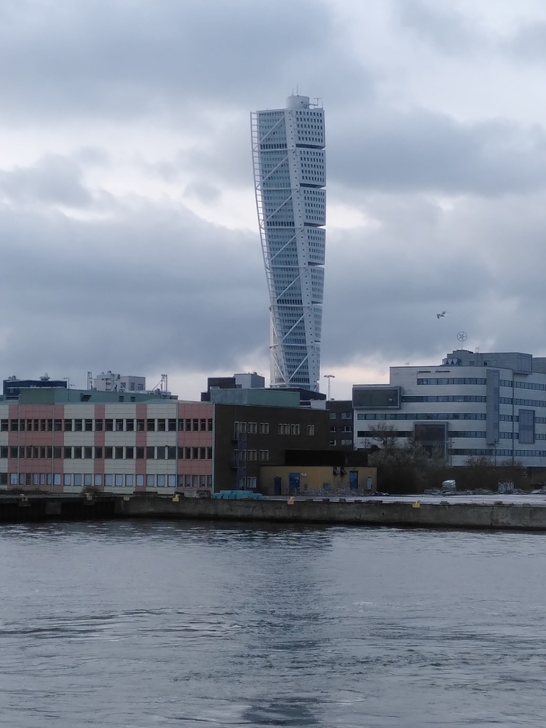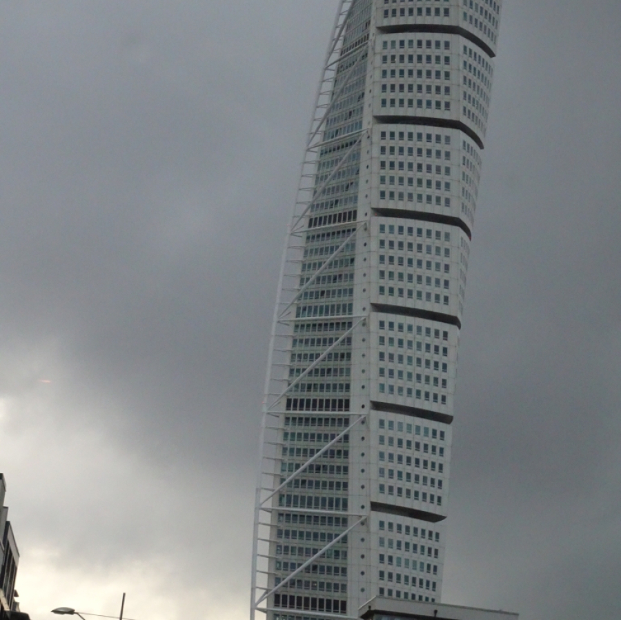 Der Ausflug ist sehr informativ und enthält auch einen kleinen Spaziergang durch die Fußgängerzone in Malmö. Wir sehen sehr viele schöne Häuser und halten auch bei dem wie einen Korkenzieher gedrehten Hochhaus, das mir schon bei der Einfahrt in den Hafen aufgefallen war.