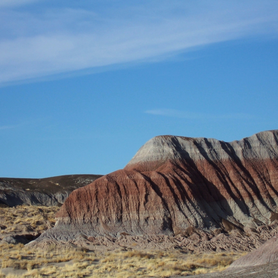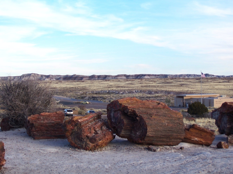 Somit konnte ich dann gegen Mittag endlich losfahren in Richtung Süden zum Petrified Forest. Dieser Nationalpark hat eine eigene Autobahnausfahrt, die für Lastwagen (außer Zulieferern natürlich) gesperrt ist.