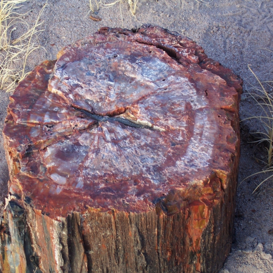 Da sich der Himmel im Westen zuzog und damit auch die Sonne wegsperrte, verzichtete ich auf einen erneuten Besuch des Crystal Forests, in dem hauptsächlich in allen Farben schimmernde versteinerte Stücke von Bäumen zu sehen sind, die dem Park auch seinen Namen gaben. Diese Gegend war von einigen Millionen von Jahren einmal ein Urwald, der dann später überflutet wurde. Dabei wurden die Baumstämme im Morast vergraben, wo sie langsam versteinerten und dabei auch die unterschiedlichsten Mineralien aufnahmen, die jetzt die Ursache für die vielfältigen Farben sind.