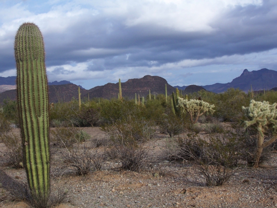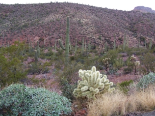Aber dann ging es endlich Richtung Westen, immer geradeaus, gut 160 km lang. Nur durch leichte Kurven, ab und zu Geschwindigkeitsänderungen, kleinere Ansammlungen von Gebäuden, Tankstellen im Nirgendwo, usw. unterbrochen. Und immer begleiteten mich meine Freunde, die Kakteen, und meine Lieblingsmusik im Satellitenradio. Gestern konnte ich das Gefühl nicht so richtig beschreiben, das ich beim ersten Anblick dieser riesigen, schlanken Saguaros hatte. Heute fiel mir der richtige Ausdruck ein: Es war, als würde ich liebe Freunde wiedersehen, die ich lange nicht mehr gesehen hatte. Die Saguaros mag ich, seit ich 2004 die ersten bei den Casa Grande Ruinen gesehen hatte. Dort traf ich auch zum ersten Mal auf die Kultur der Pueblo-Indianer, die es heute ja zum größten Teil nicht mehr gibt.