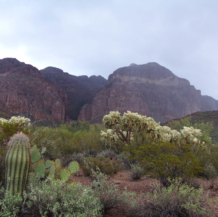 Unterwegs fing es plötzlich sehr heftig zu regnen an, so dass ich schon fürchtete, irgendwo eine Flash Flood abwarten zu müssen. Dass damit nicht zu spaßen sein muss, zeigte mir ein kurzes Erlebnis auf der Strecke von Tucson zum Organ Pipe: Da hatte es auch immer mal wieder kurzzeitig leicht geregnet und in einer Senke stand noch etwas Wasser. Das war wohl doch tiefer als ich zuerst dachte. Auf jeden Fall hatte ich für den Bruchteil einer Sekunde keine Bodenhaftung mehr und kam wohl so um 10 cm aus der richtigen Richtung, was ich aber schnell wieder korrigieren konnte. So eine Erfahrung mit tieferem und fließendem Wasser möchte ich auf keinen Fall machen. Aber es gab keine derartigen Probleme. Nur von meinem Auto hätte ich noch am Morgen ein Foto machen sollen: Da war es noch so richtig schön grau-blau, nachdem sich der rote Staub mit dem weißen und grauen Staub der südlichen Gegenden vermischt hatte und jetzt ist es wieder leuchtend blau.