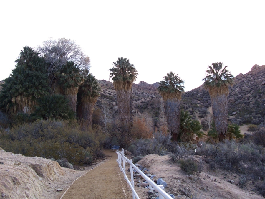 Aber es gab eine Alternative: Direkt hinter dem Visitor Center führte eine geteerte Straße bis direkt an eine andere Oase, die dann durch einen kurzen Fußweg erreicht werden konnte. Das war dann zwar nicht dasselbe wie wenn man nach einer Wanderung durch die Felsenwüste plötzlich vor Palmen steht, aber doch ein Ersatz. Und wenn man sich vorstellte, dass man nicht gerade aus dem Auto ausgestiegen und diesen schönen Spazierweg hinuntergegangen war, sondern müde und abgekämpft von einer Wanderung angekommen ist, dann war der Anblick schon faszinierend.