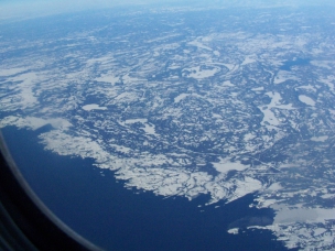 Die 10 Stunden 40 Minuten Flugzeit nach Atlanta zogen sich wie Kaugummi. Zu fotografieren gab es meist nur eine geschlossene Wolkendecke, die aber über Neufundland/Labrador plötzlich weg war.