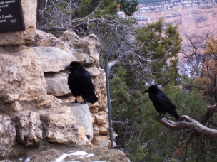 Auf der Straße am Canyon entlang und an den Aussichtspunkten habe ich noch einige Tiere getroffen: Große schwarze Vögel (Raben oder Krähen?) waren an einigen Aussichtspunkten zu sehen. An einem sah ich auch noch einen kleinen Vogel. Und als ich so wohlgemut die Straße im Ostteil entlangfuhr, standen da plötzlich 2 kleine rehartige Tiere, die bis auf die Größe und dem Geweih denen vom Morgen ziemlich ähnlich waren, am Wegrand und glotzten mein Auto an. Natürlich gibt es wieder keine Fotos; da hätte ich einen Beifahrer mit schussbereiter Kamera gebraucht.
