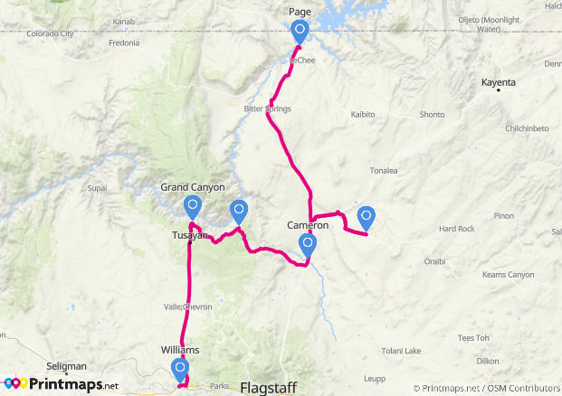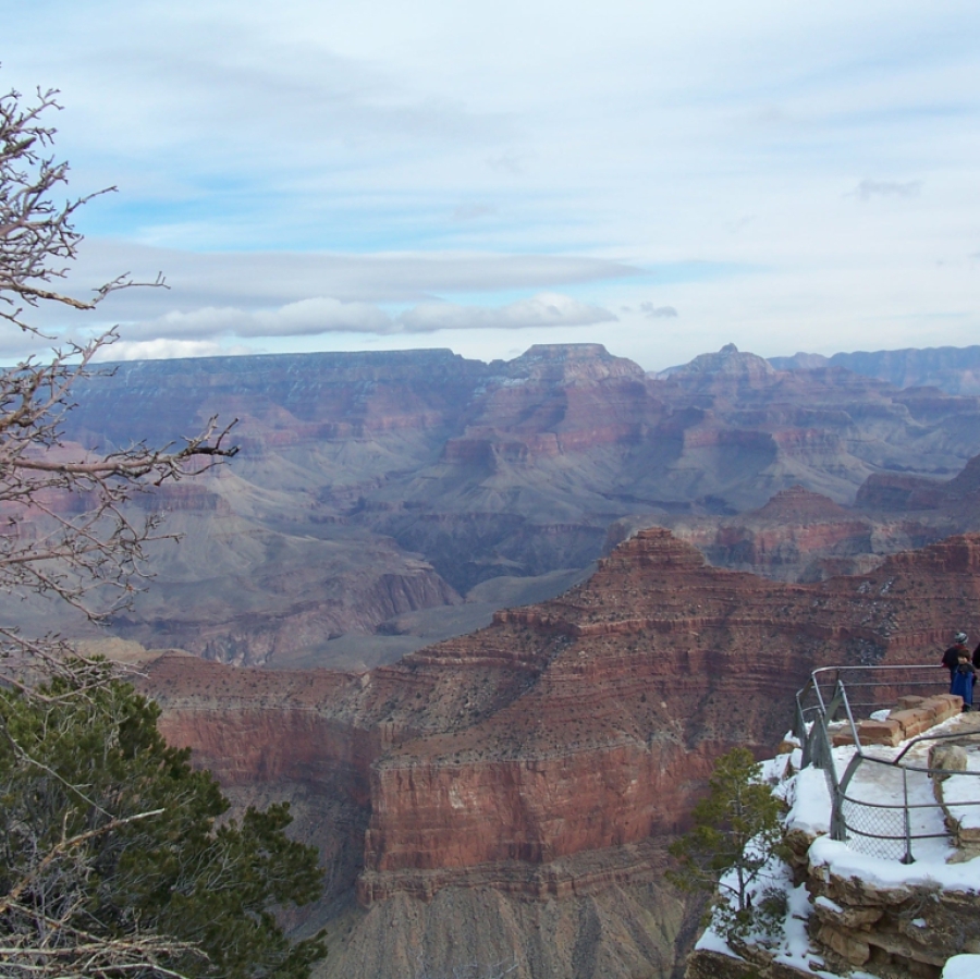 Nach diesem kurzen Intermezzo gab es keine Unterbrechung meiner Fahrt mehr. Nur am IMAX-Kino erlebte ich eine Enttäuschung: Das Kino öffnet im Winter morgens erst um 10 Uhr und es war erst kurz nach 9. Also kein Film über den Grand Canyon. Stattdessen weiter zum Parkeingang und dort erkundigen, wie die Straßenbedingungen am East Rim sind. Alles ok, die Straße ist frei, so dass ich direkt nach Cameron fahren konnte und nicht den großen Umweg über Flagstaff nehmen musste.