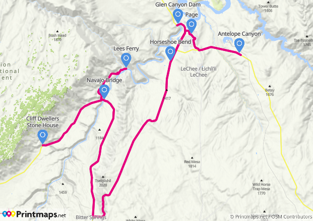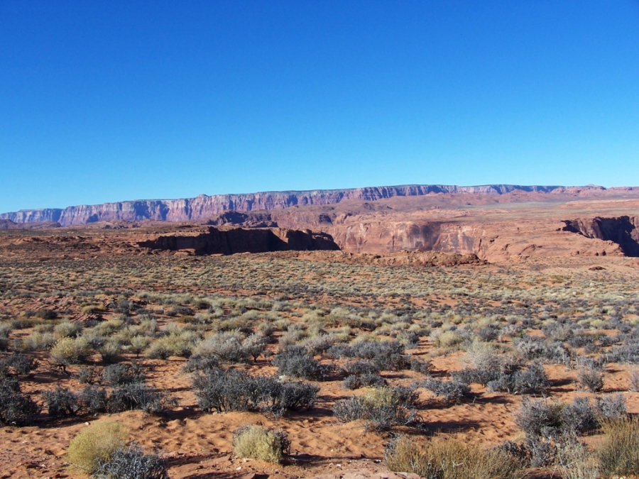 Wieder zurück in Page war noch genügend Zeit für weitere Besichtigungen. Dafür hatte ich mir das Gebiet südlich der Gebirgskette zwischen Page und Kanab, das an der 89A, der alten Bundesstraße von Page nach Utah, gelegen ist, ausgesucht. Zuerst ging es über eine sehr hohe Brücke, bei der neben der Autobrücke noch eine zweite für Fußgänger (zum Fotografieren) gebaut wurde, über den Colorado.