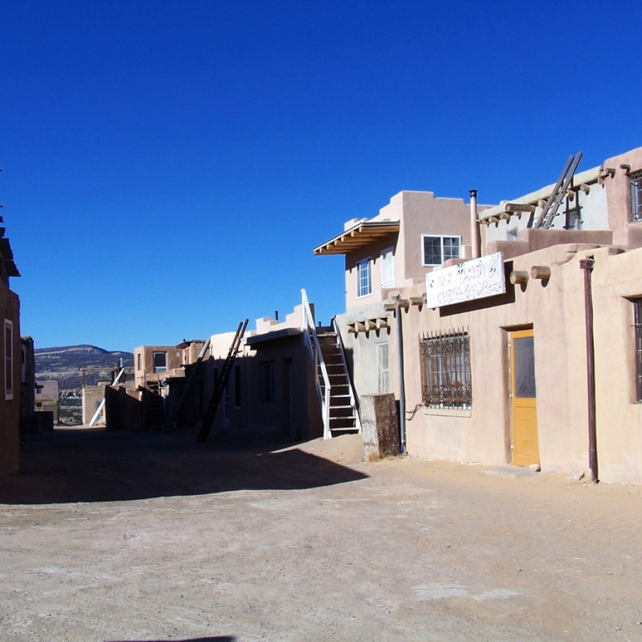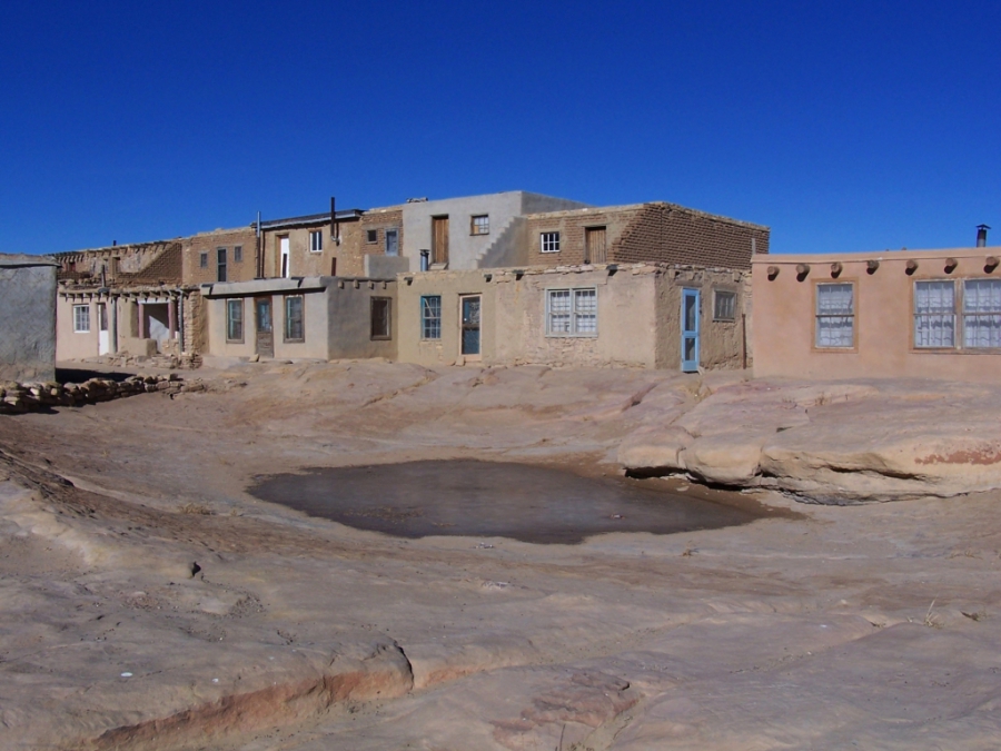 Nach gut einer Stunde auf der Autobahn führte mich mein Weg in das Acoma-Reservat, in dem ein kleiner Stamm der Pueblo-Völker lebt. Das Besondere an Acoma ist, dass das alte Pueblo auf einem Felsen liegt und aufgrund seiner Lage immer noch keinen Strom- und Wasseranschluss hat, von Kanalisation ganz zu schweigen.